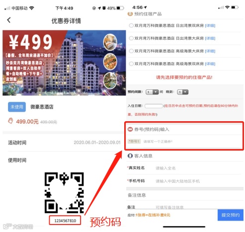 2、核销:预约成功后,凭订单号至酒店前台即可核销。