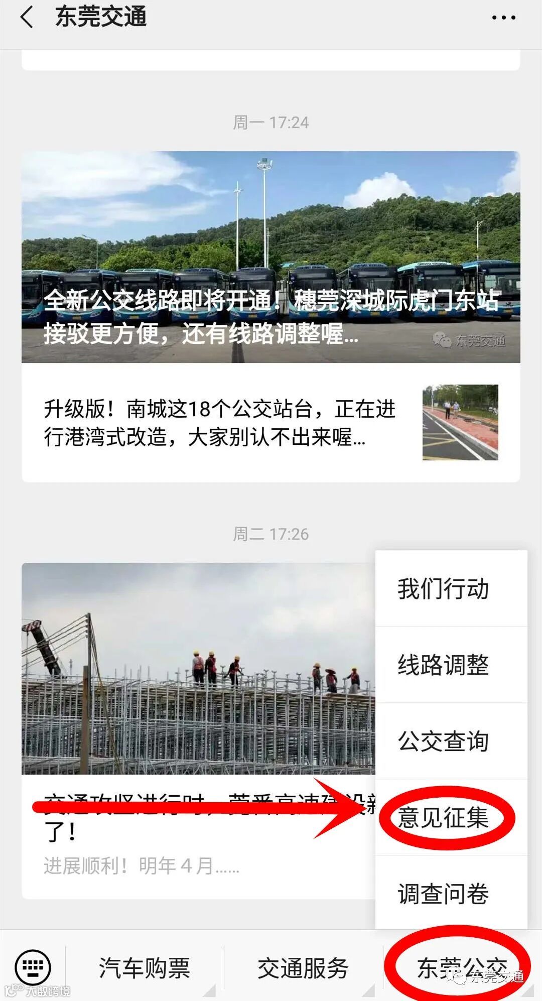 在公示期限内,市民对拟优化调整及新增的公交线路的意见和建议,可通过“东莞交通”微信公众号或书面来信的方式反映(邮寄地址:东莞市东城街道立新金龙路16号交通大厦市道路运输事务中心城市公交部,邮编:523125)。