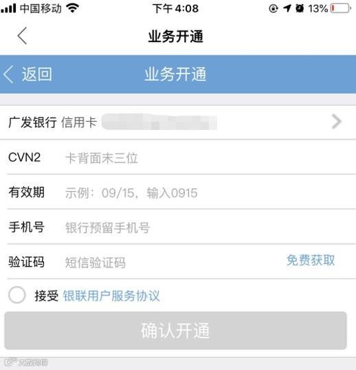 第二步:绑定广发银行信用卡