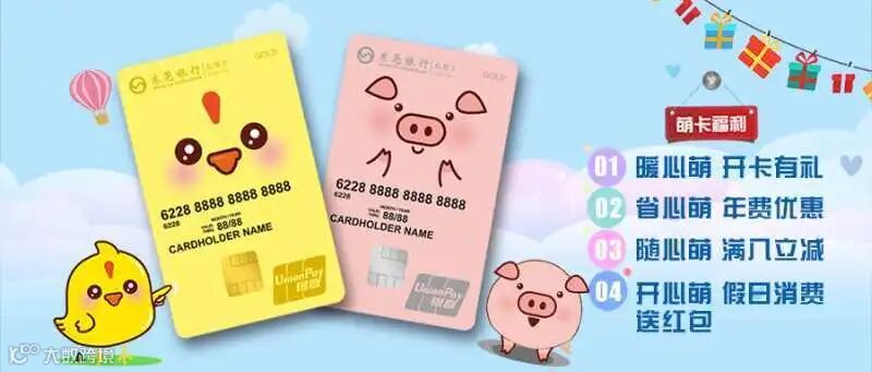 2020年内,办理东莞银行萌卡信用卡的新客,开卡3个月内消费1笔满38元,即可选一份开卡礼。