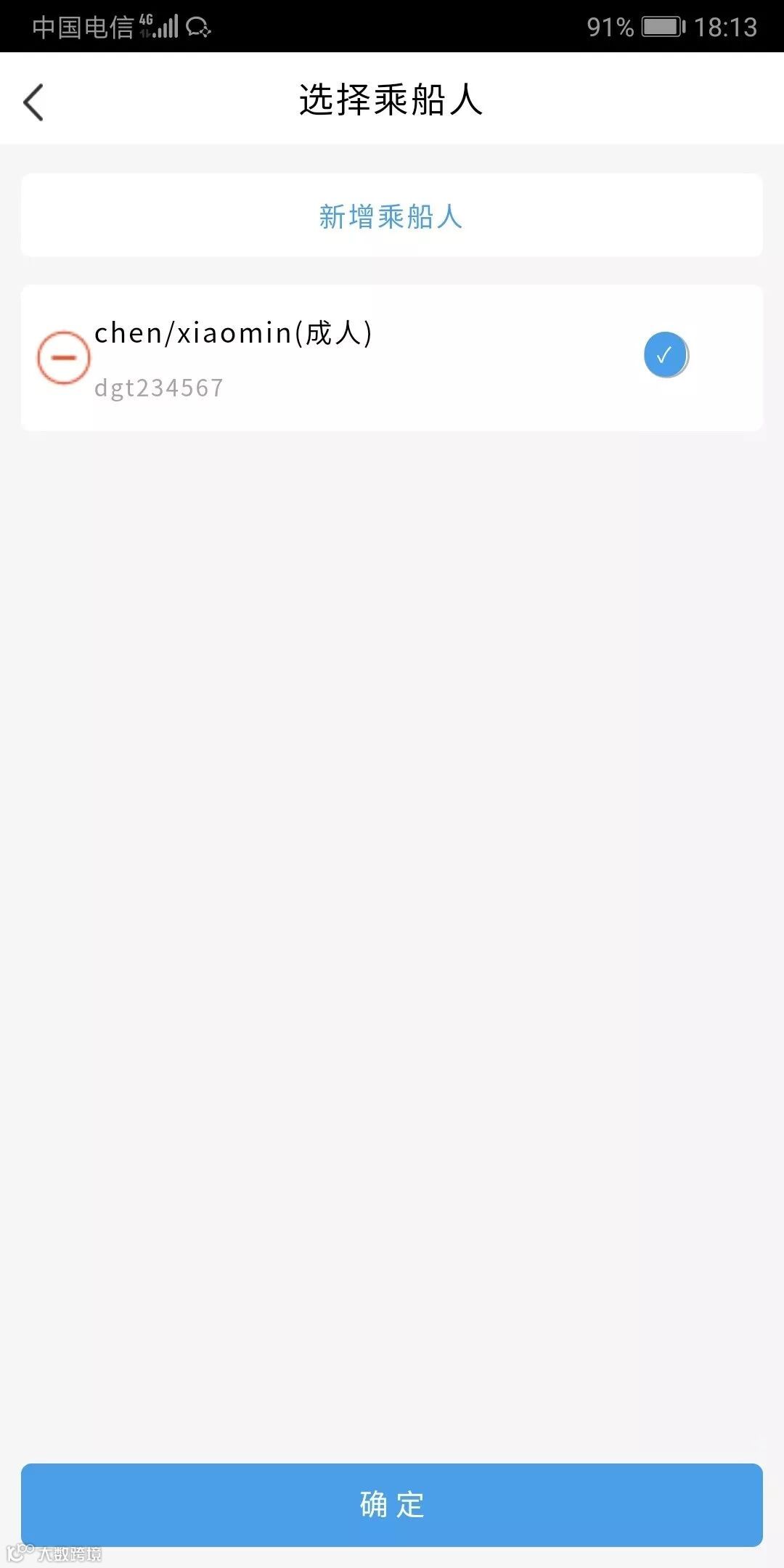 选择乘船人,点击“确定”