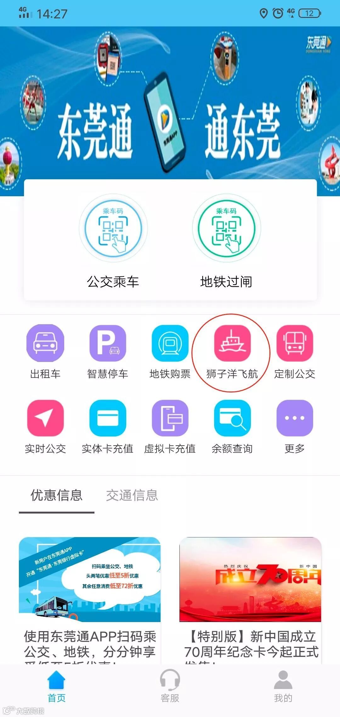 打开东莞通APP,点击“狮子洋飞航”
