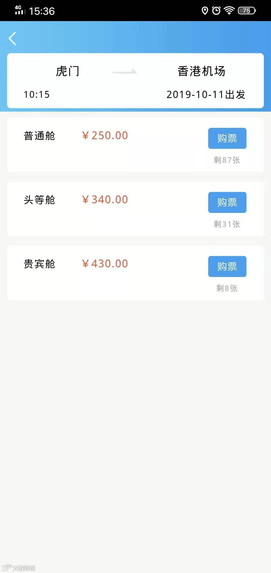 票价 (虎门-香港)
