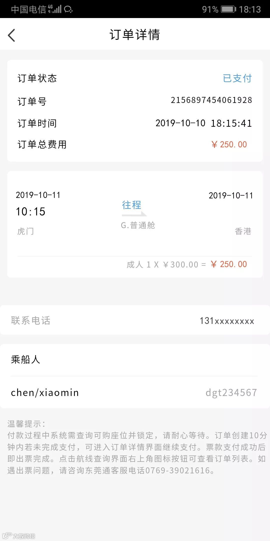 填写联系电话及添加乘船人