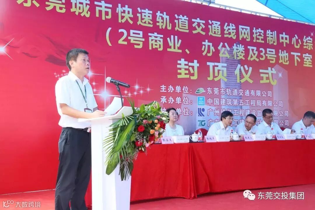 2019年6月29日上午,东莞市城市快速轨道交通线网控制中心综合体工程(2号商业、办公楼及3号地下室)(下称“轨道交通大厦”)封顶仪式顺利举行。