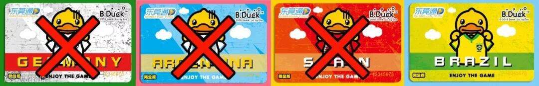 领取条件:集齐3款被淘汰球队的世界杯系列小黄鸭卡(德国队、阿根廷队、西班牙队),到营业厅登记卡号(每个卡号只能登记一次)即可领取东莞通纪念卡册一套。