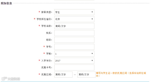 网络订票须填写相关信息