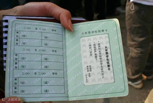 学生证上粘贴的火车票学生优惠卡(新生尚未办理)