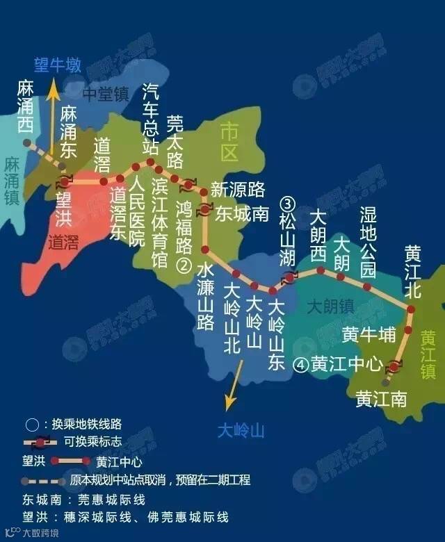 1号线三期线路起点为黄江中心站,终点为莞深边界,拟与深圳6号线支线衔接,线路全长3.10km,设站1座。(ps:可以到深圳买买买!)