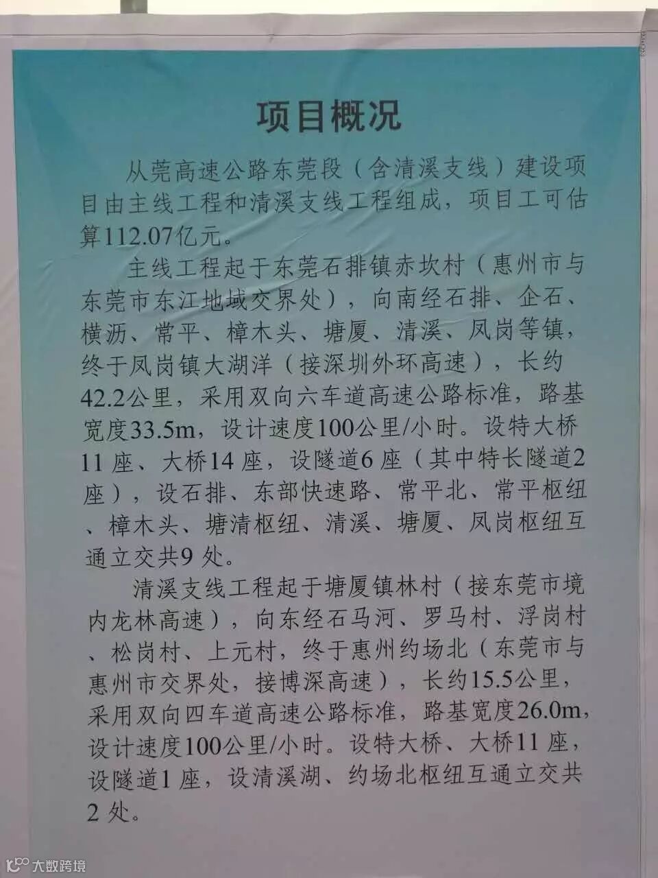 今天开通的从莞高速公路东莞段(含清溪支线),项目位于莞深高速公路和博深高速公路之间,是东莞市“五纵四横六连”高速公路网的“第四纵”,属于省、市重点工程。