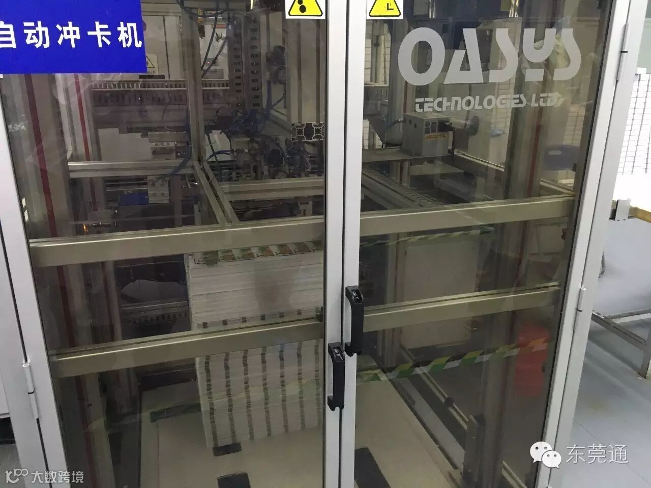 第八个步骤:冲卡和剪卡。进入这个自动冲卡机,一版版的卡片们在这里就要依依不舍地说再见了~