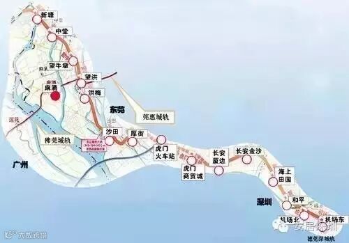 它的起点是广州北站,经新塘到东莞境内,经虎门、长安等地最后进入深圳市境内。全程运行时间60分钟,速度目标值为每小时140公里,届时每隔2分半钟就会有一趟车。从东莞去广州或者深圳,半个小时即可到达。