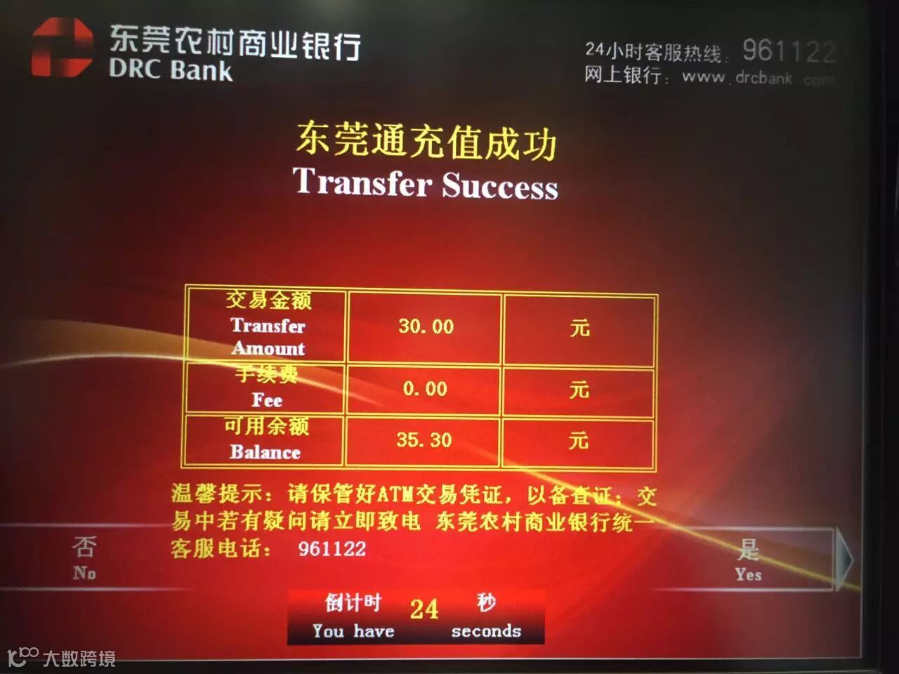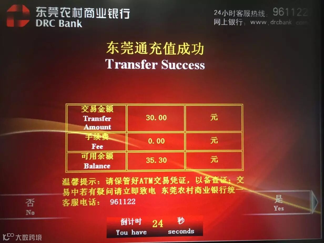 东莞通公司其实第一次听说在ATM机充值东莞通卡我是拒绝的,首先我要试一下看看是不是真的可以充。