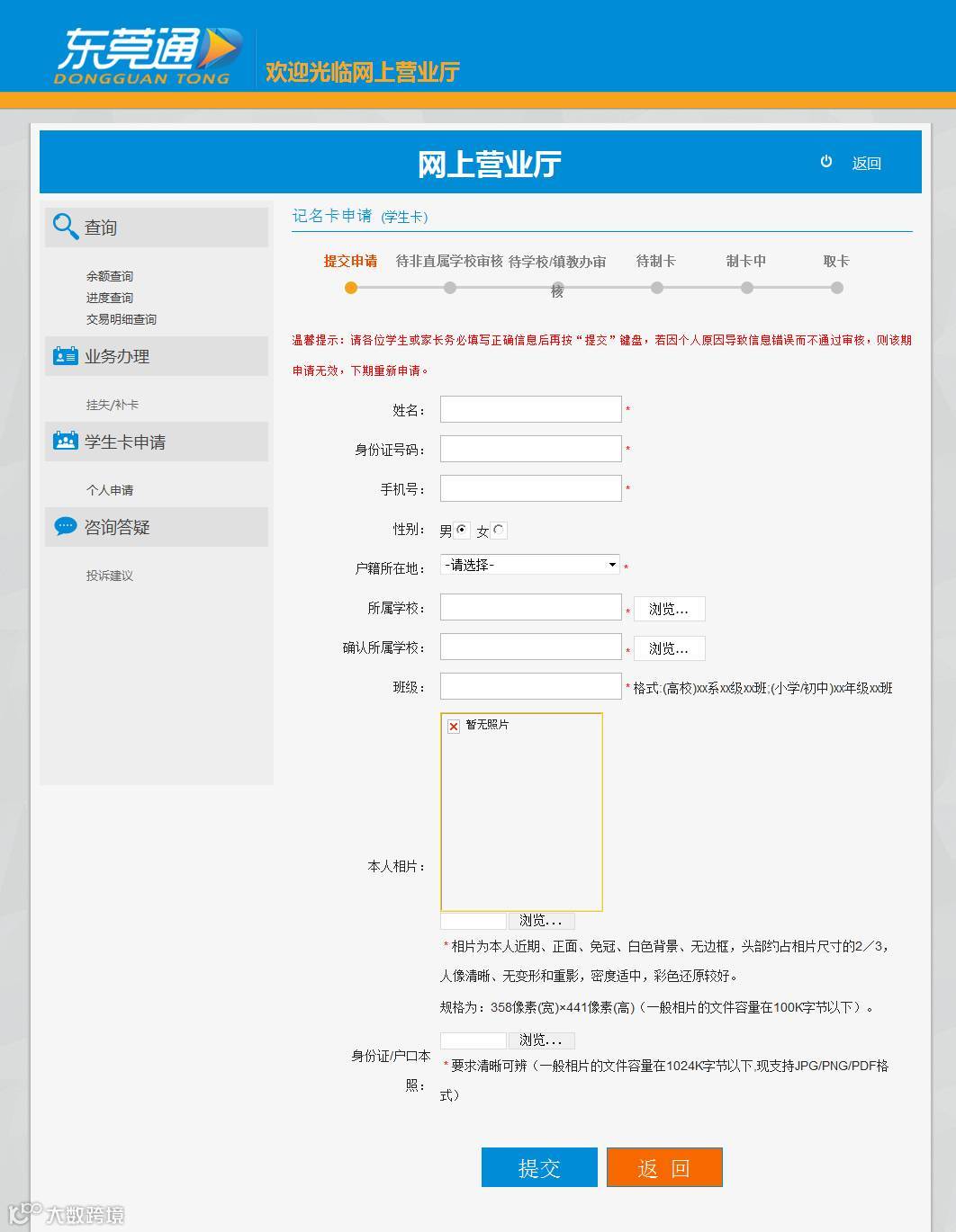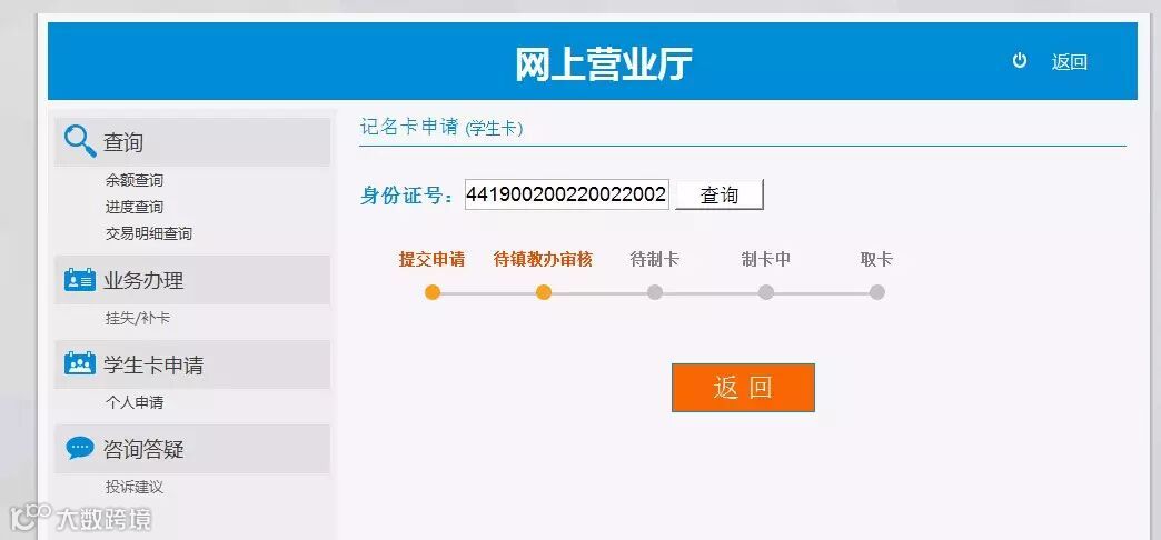 然后就可以静静的等待学校发卡啦,还可以自己在网上查询办理进度哦~