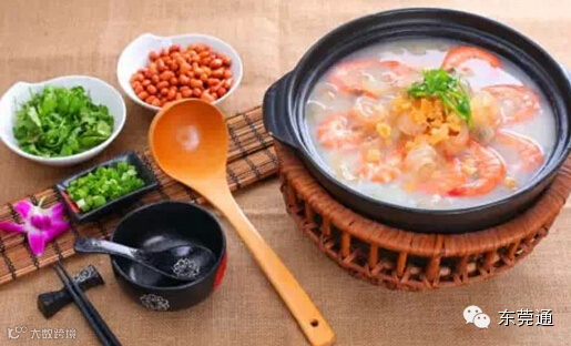 经典美食觅食点:东兴海鲜粥城(凌晨两三点时还是生意爆满,当地人称为“天光粥”的好野:东莞传统粥底放入萝卜片煲开后,再放入新鲜宰杀的排骨边和猪舌头,待煲熟后再放入盐、胡椒、果皮等调味)