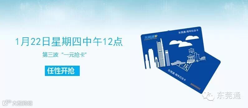 福利一波接一波,第三波“一元抢卡”活动将于1月22日12:00任性开抢!看到大家都在美宜佳用一元换购纪念卡,还不心动?快来参与吧! 2500张东莞通周年纪念卡等着你。