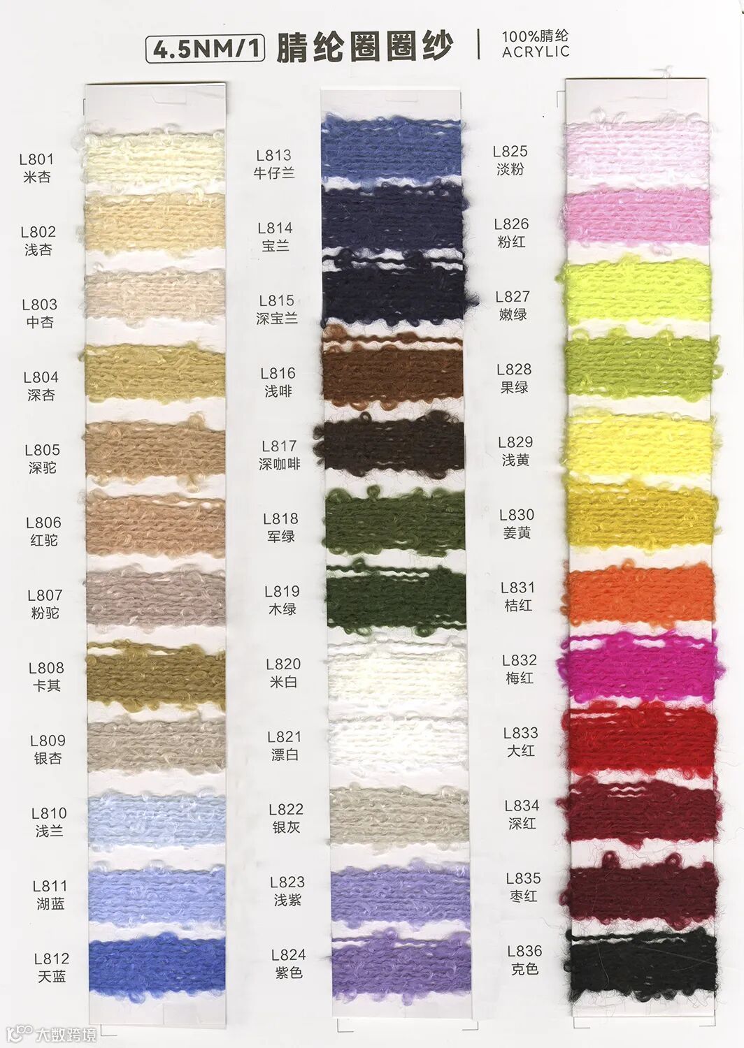 高品质腈纶圈圈纱,规格4.5NM,纯腈纶材质,针形三针精细编织。柔软舒适,耐磨耐用,适合多种纺织制品。