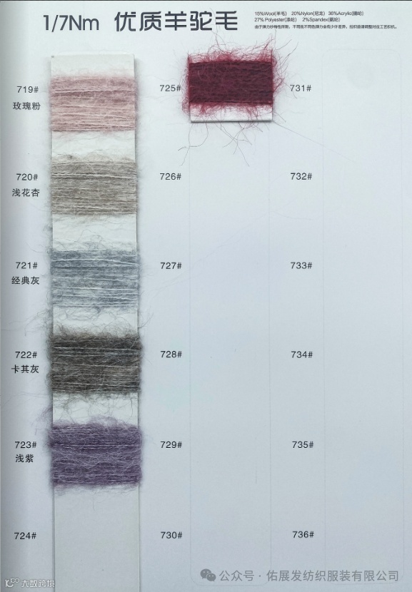 成分/比例:59%羊驼 25%腈纶 15%尼龙 1%氨纶