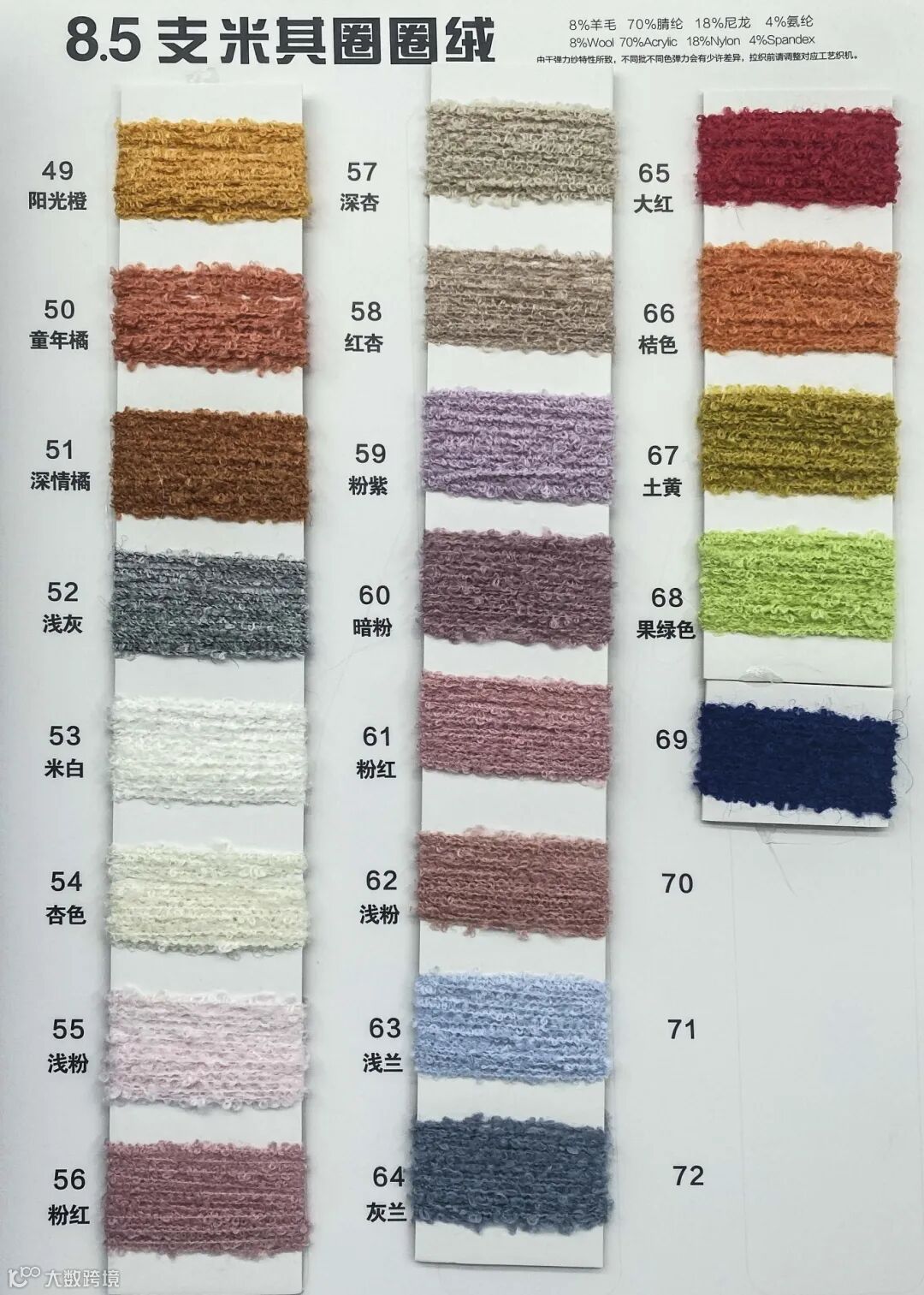 成分/比例:8%羊毛 70%腈纶 18%尼龙 4%氨纶