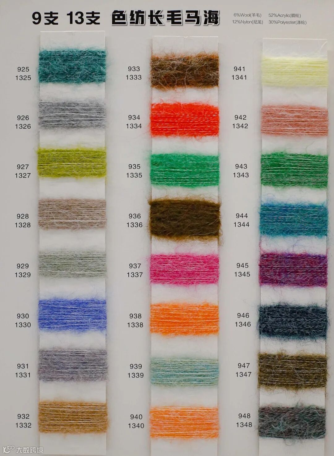 色纺长毛马海毛纱线,拥有超凡细腻感。这款线采用了羊毛和高级纤维融合制作,集高品质腈纶、尼龙与羊毛于一体,呈现独特的质感与光泽。其中羊毛成分占6%,带来天然的温暖与弹性;腈纶与尼龙纤维占据大半比例,确保线质的坚固耐用与舒适柔软。