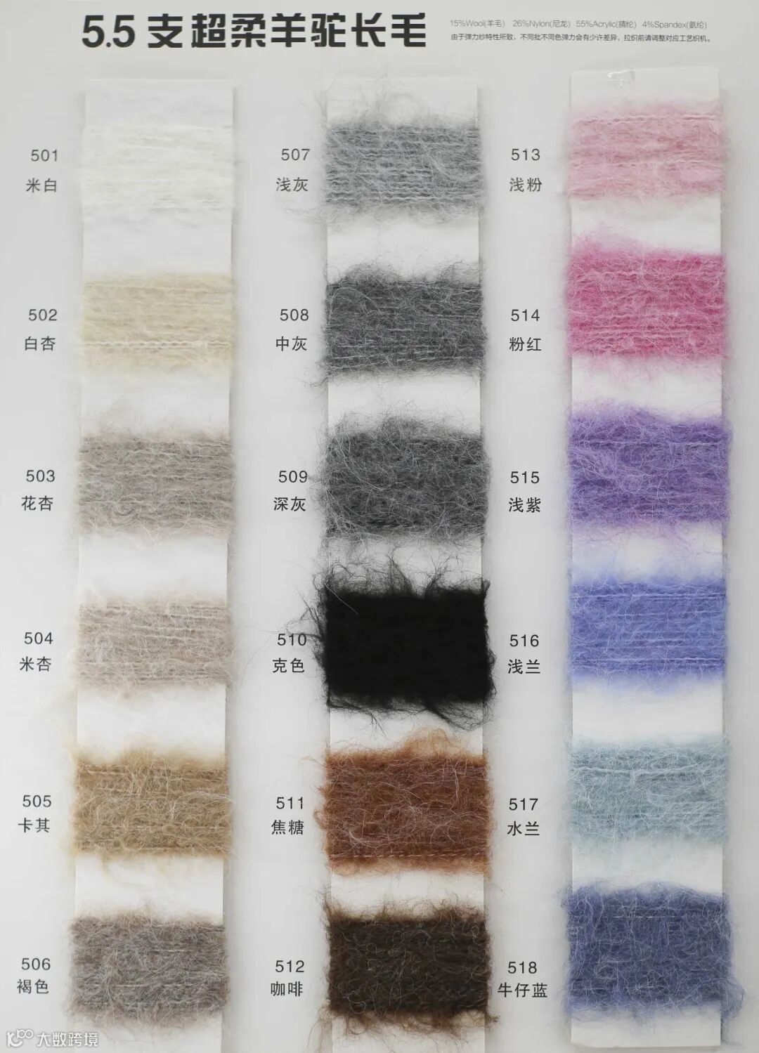 色纺长毛马海,融合羊毛、腈纶、尼龙等多种材质,精致细腻。9支规格独特设计,羊毛占比达至精巧的6%,展现优雅的质感与保暖性能;腈纶与尼龙的比例分别为12%和30%,赋予其卓越的柔韧与弹性。针形纤维紧密交织,呈现独特美感。
