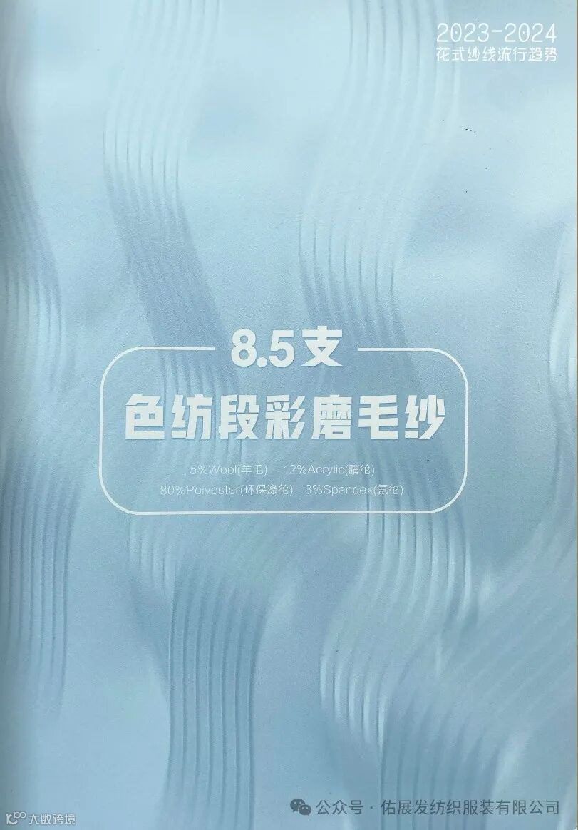 成分/比例:5%羊毛 12%腈纶 3%氨纶 80%环保涤纶