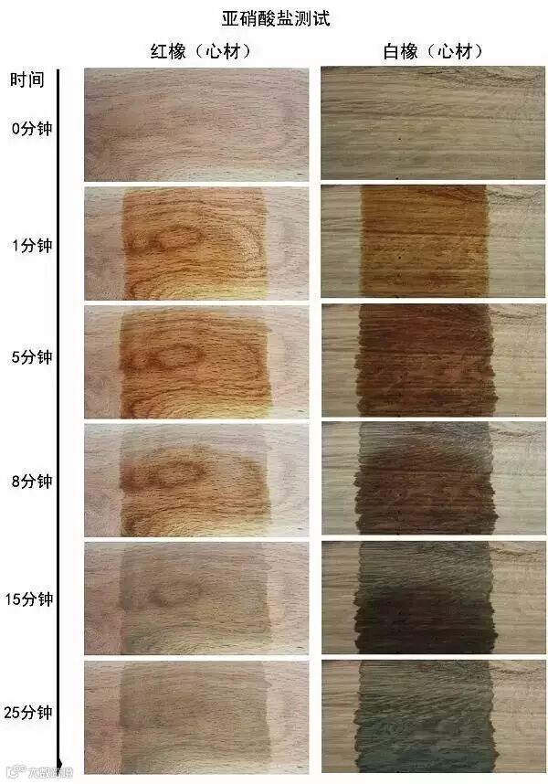 一般来说,红橡木的边材为白色至浅棕色,心材粉红棕色。白橡木边材为浅色,心材浅棕色至深褐色。对于没有经验的人,想通过颜色来辨别红橡和白橡其实还是有点困难的。
