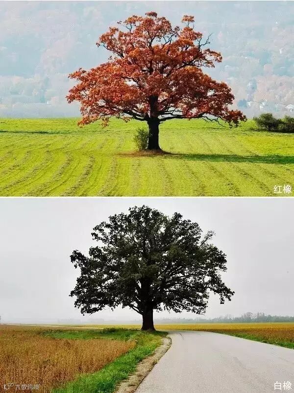 看叶子,这是最实用也是最简单的方法,只要比较叶子的形状就可以区别红橡和白橡。红橡的叶子边缘是尖的,而白橡叶子的边缘则是圆的。此方法只针对树种,如果成为板材就不能鉴别了。
