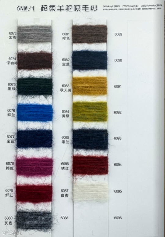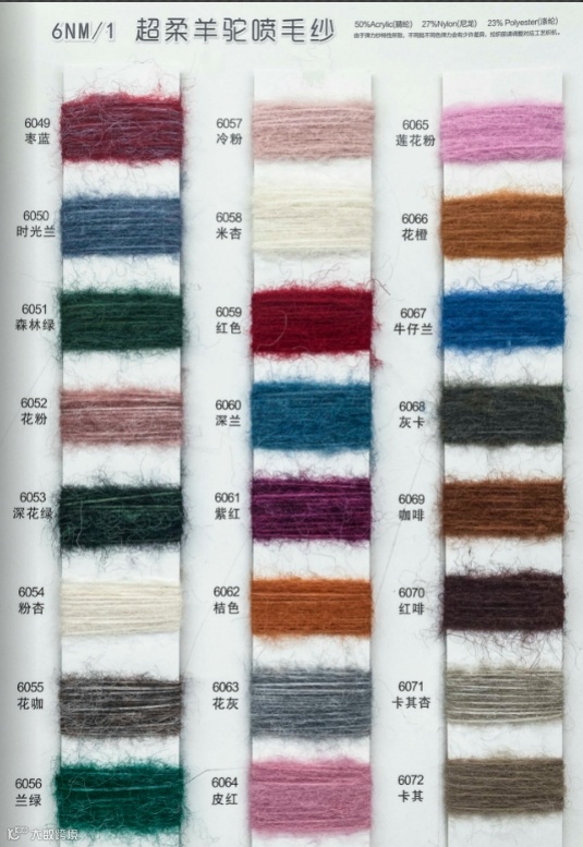 这款产品采用5.5支的纱支规格,成分比例为15%羊毛、26%尼龙、55%腈纶、4%氨纶。经过喷毛处理,更加具有立体感和柔软性,适合用于针织和梭织。
