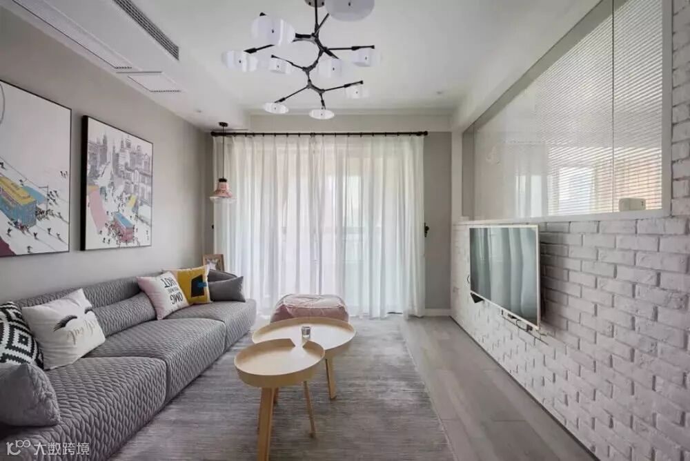 大客厅只有通向阳台的小门采光?将边上剩余的墙面开个大窗,引入阳台光线,一下亮堂很多。