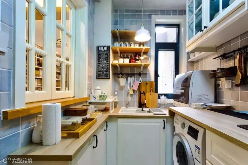 厨房墙上开窗,白色的窗格与厨房隔断门同款,简约清新,可以为餐厅借光也是一个不错的装饰。