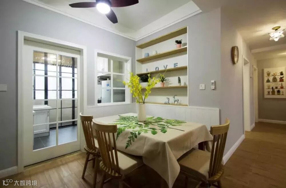 餐厅距离采光窗户远,打通厨房和餐厅墙,开个窗增加餐厅采光。