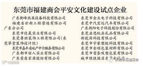 据了解,东莞市福建商会已经遴选出16家平安文化建设试点企业,各项平安文化建设工作均在稳步推进中。