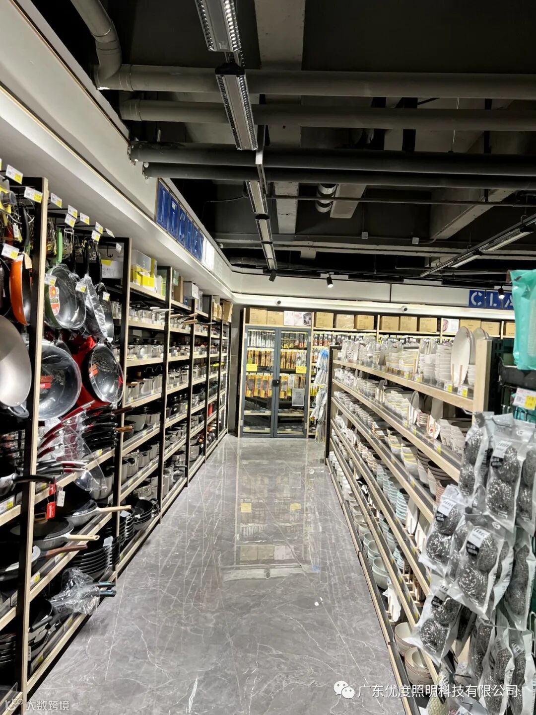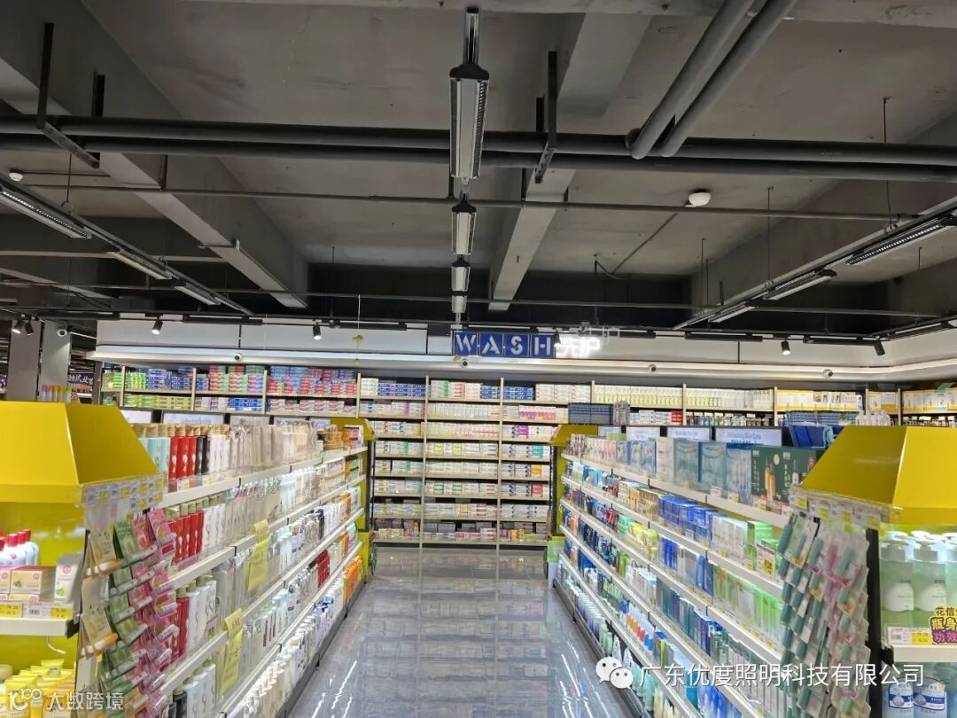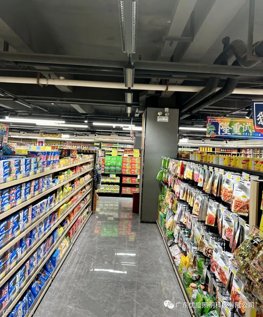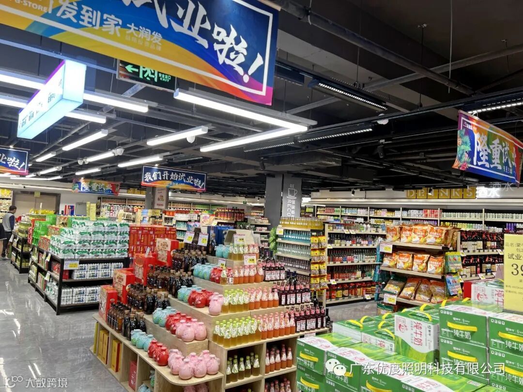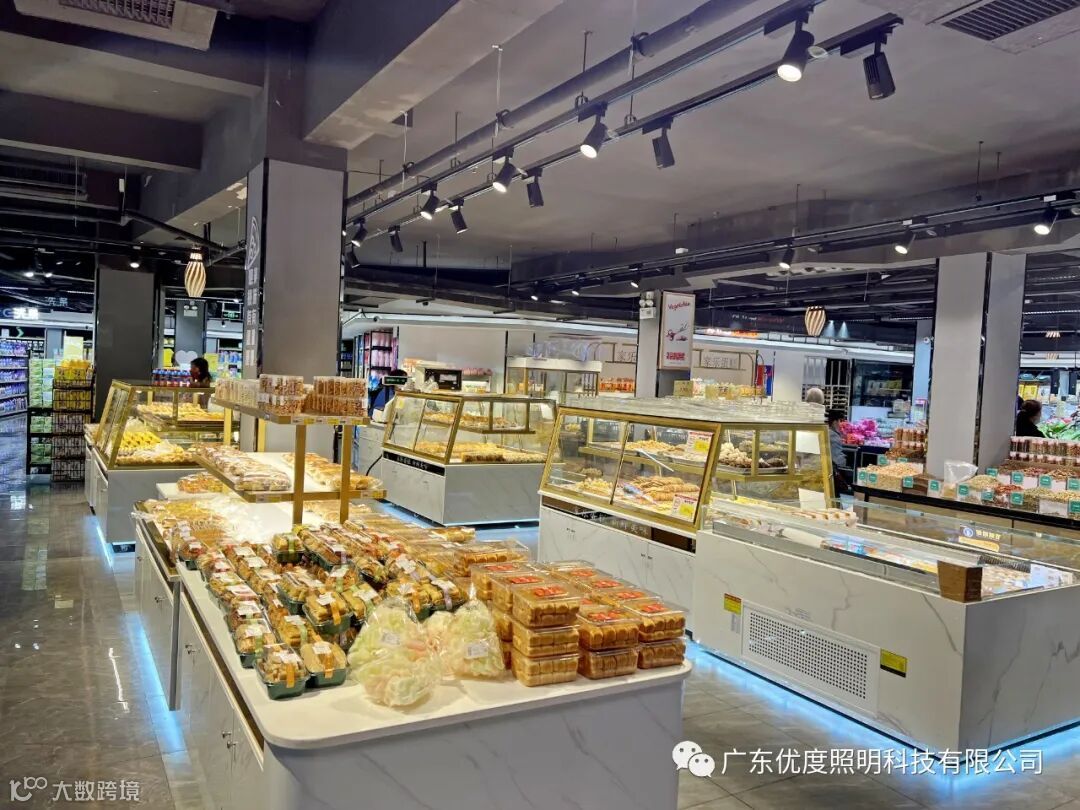 本超市楼层偏低,我们在灯光布局时,特以灵动线性射灯为主,导轨灯,明装筒灯,装饰吊灯等为辅的照明,秉承着“简化”的设计理念进行灯光打造,让天花不再凌乱,还超市天花整齐美观,给顾客营造舒适的空间购物体验。