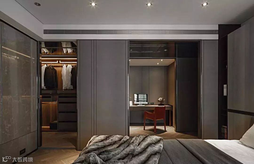 在我们的固有思维里,衣柜一般都是封闭式的,采用刷漆的柜门将所有衣物遮挡起来,达到与室内风格和谐、统一的视觉效果。
