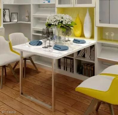 柜体自带了可折叠的餐桌,操作简单。敞开可满足多人用餐,合上便是一个完整的活动空间,适合空间紧凑的户型。