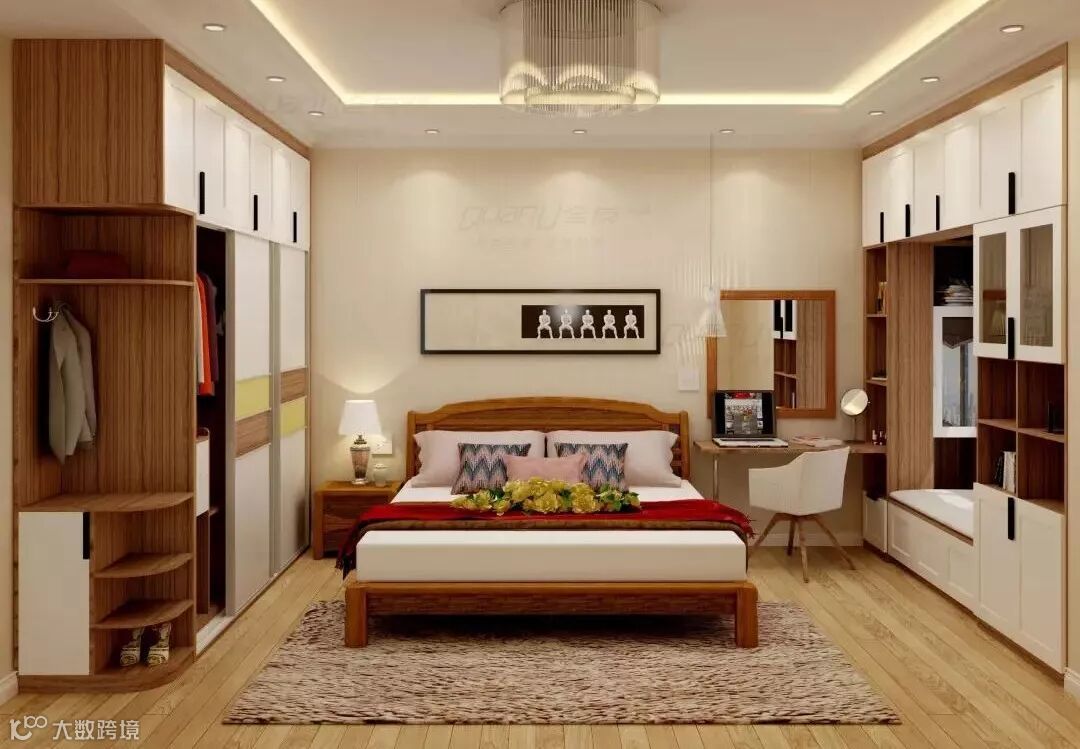 从柜体延伸出的小桌板,可供梳妆打扮,更是在家办公的舒适选择。