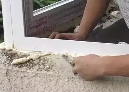 初步固定后,在窗框和洞口之间打入发泡胶进行固定密封,发泡胶会溢出,这是正常的,等待发泡胶完全干燥以后,再用壁纸刀将多余的发泡胶刮掉,最后用玻璃胶密封。