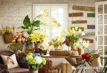 法式田园:主要在于家具的洗白处理及大胆的配色,以明媚的色彩设计方案为主要色调,家具的洗白处理能使家具呈现出古典美,而红、黄、蓝三色的配搭,则显露着土地肥沃的景象,而椅脚被简化的卷曲弧线及精美的纹饰也是法式优雅乡村生活的体现。