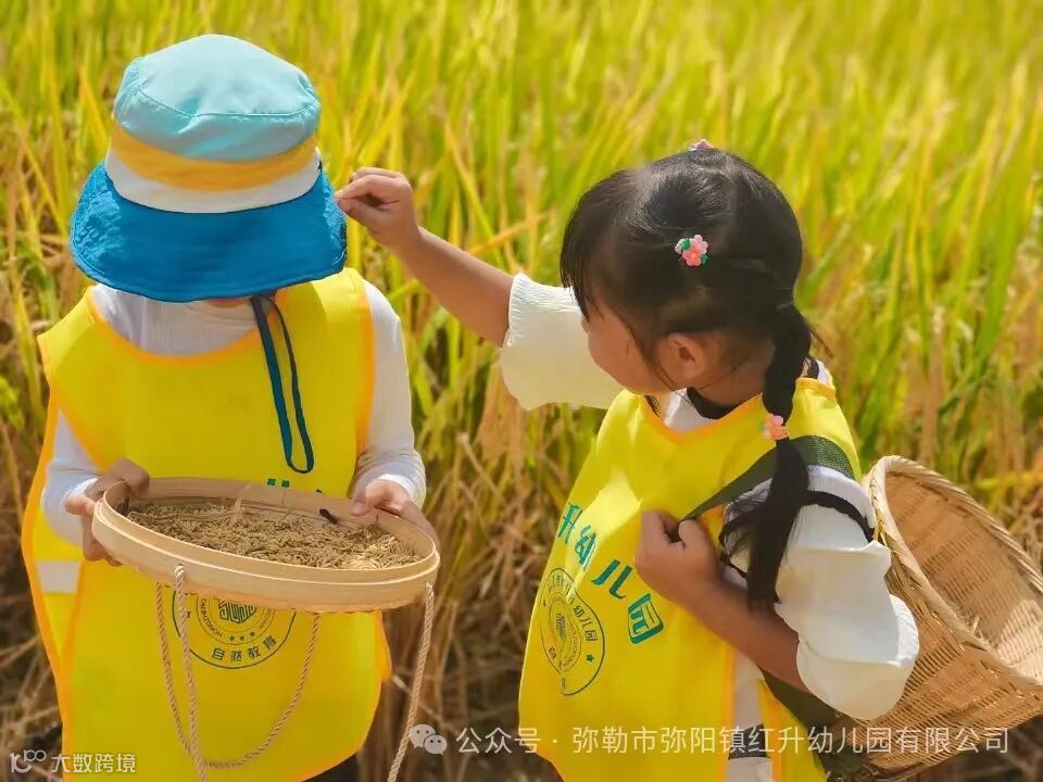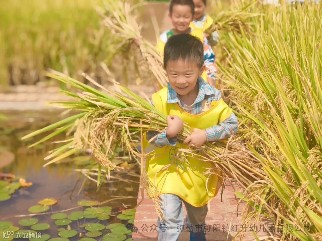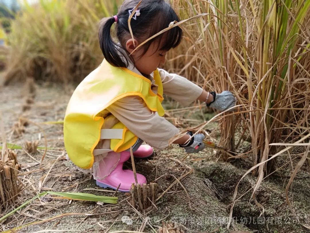 清晨,当第一缕阳光洒在稻田上,那一片金色海洋便泛起了微光。孩子们走进稻田,老师们再次拿出《稻谷的一生》带孩子们回顾,从一粒种子到插秧到施肥、除草、抽穗等过程到今天的丰收,孩子们都是参与者也都是见证者……