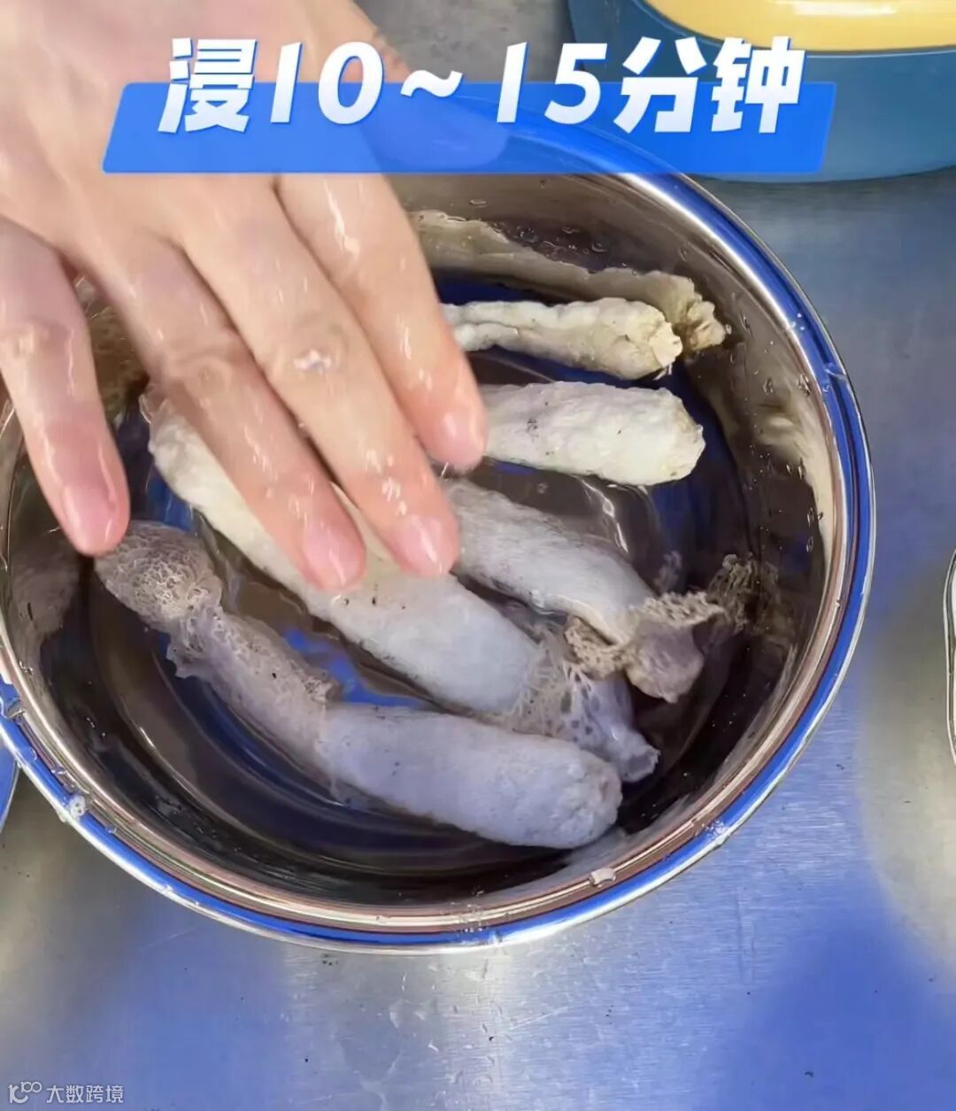 3、竹笙加盐浸泡15分钟