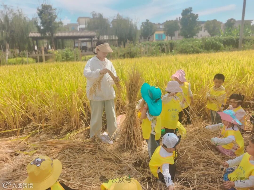 在金黄的田野里,稻穗沉甸甸地低垂着,那是大地对辛勤劳作者的慷慨馈赠。收割稻谷的季节,就像一场盛大而神圣的庆典,在小朋友开割前,邀请基地上最年长的奶奶来做了一个简单而庄重的开割仪式来庆祝稻谷的丰收。