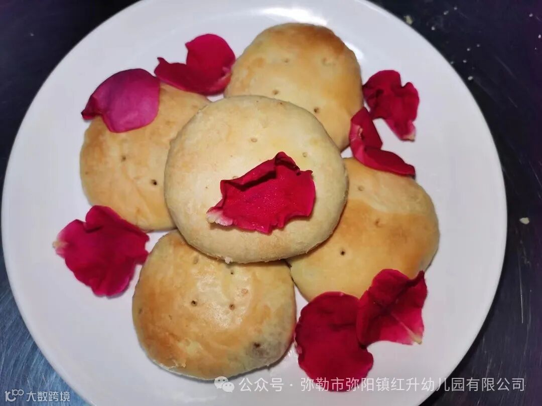 当饼皮在烤箱里慢慢鼓起,逐渐金黄,一出炉,香气瞬间在空气里弥散开来。孩子们迫不及待想要品尝自己的劳动成果,一入口,层层花香冲开味蕾,玫瑰花瓣让口感在细腻中又略带嚼劲,从里到外都散发着恰到好处的清甜。