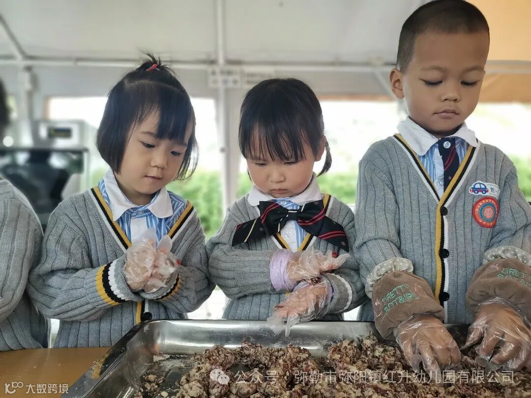 戴上小手套,一起揉一揉、搓一搓,搅拌好馅子,就开始一起团团子咯,每团好一个都要在老师这里过秤哦。