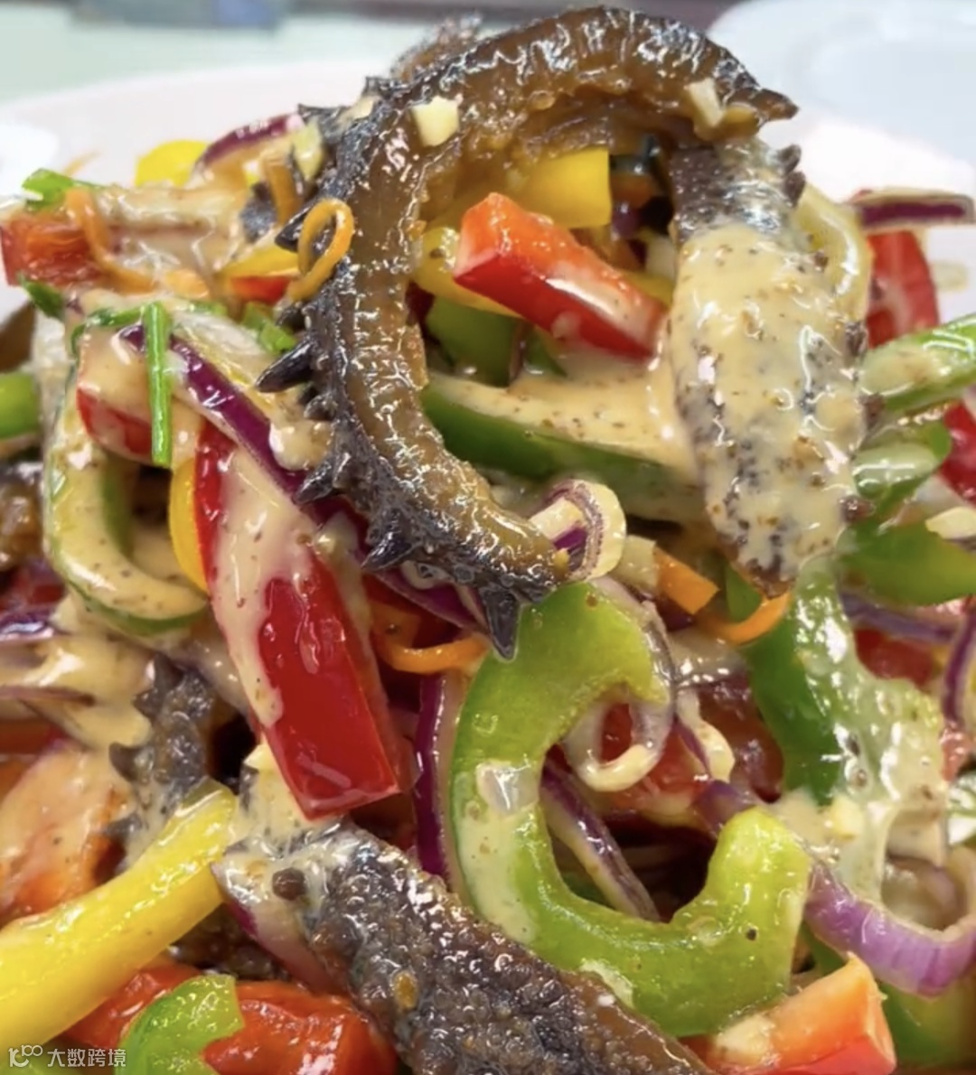 最后放入海参,沙拉酱