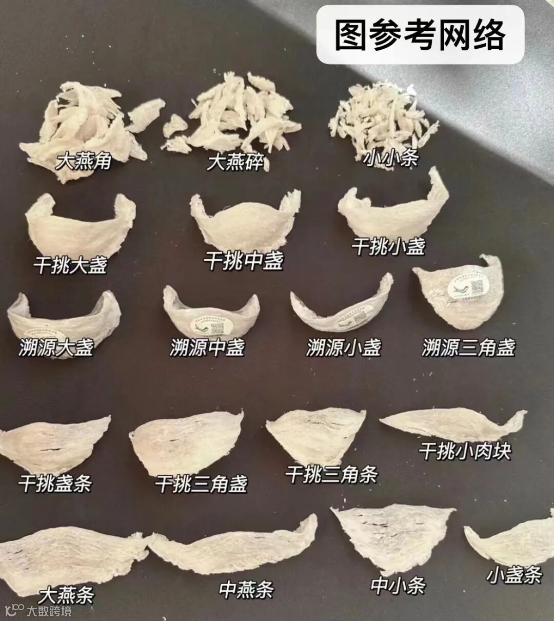 从左往右:燕盏、燕条、燕碎