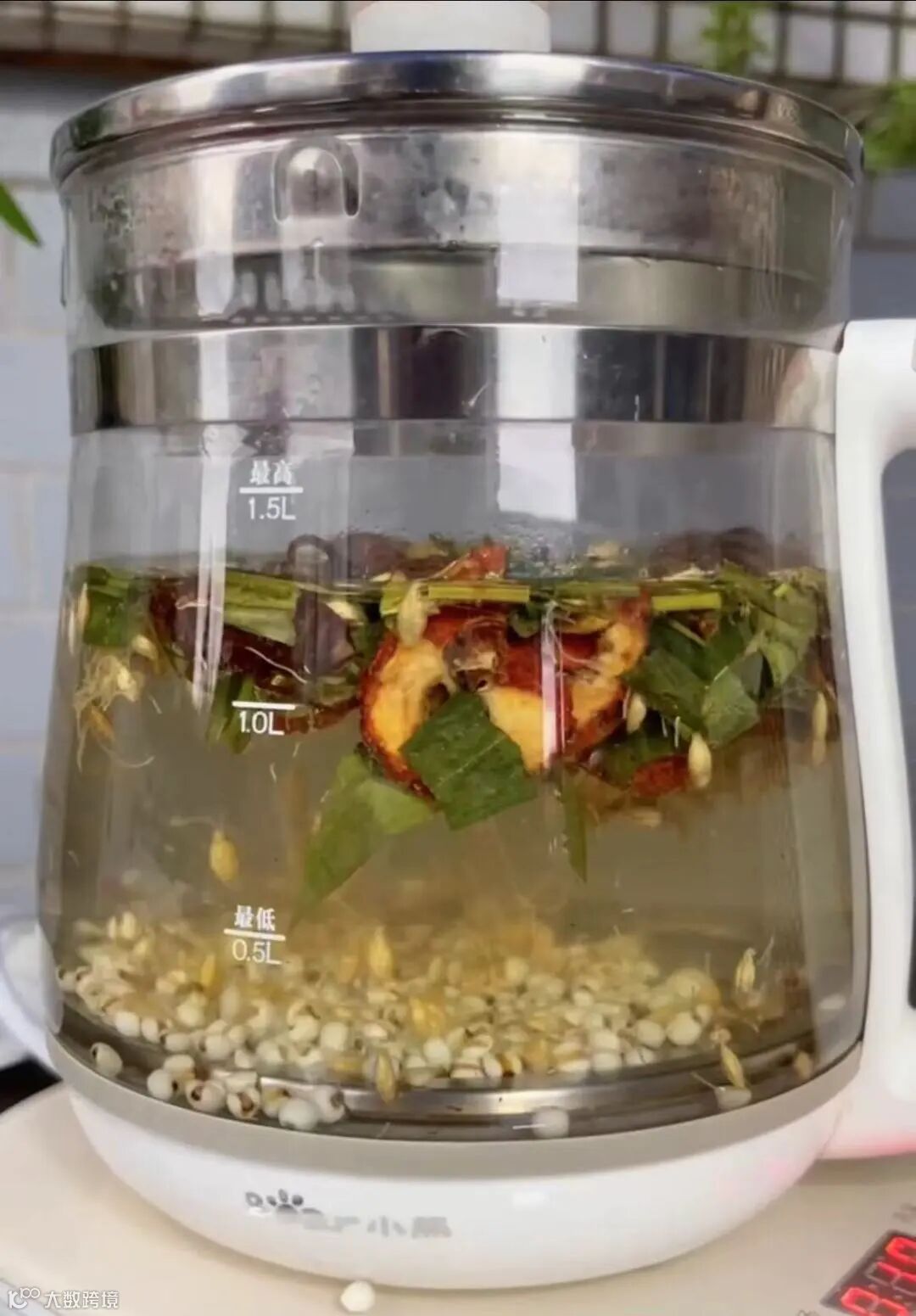 2、水沸腾后(1000ml)、所有材料放入炖壶。
