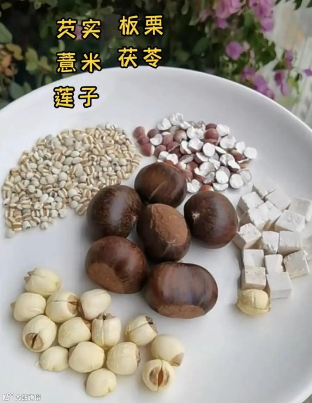 板栗、绍实、莲子、薏米、云苓