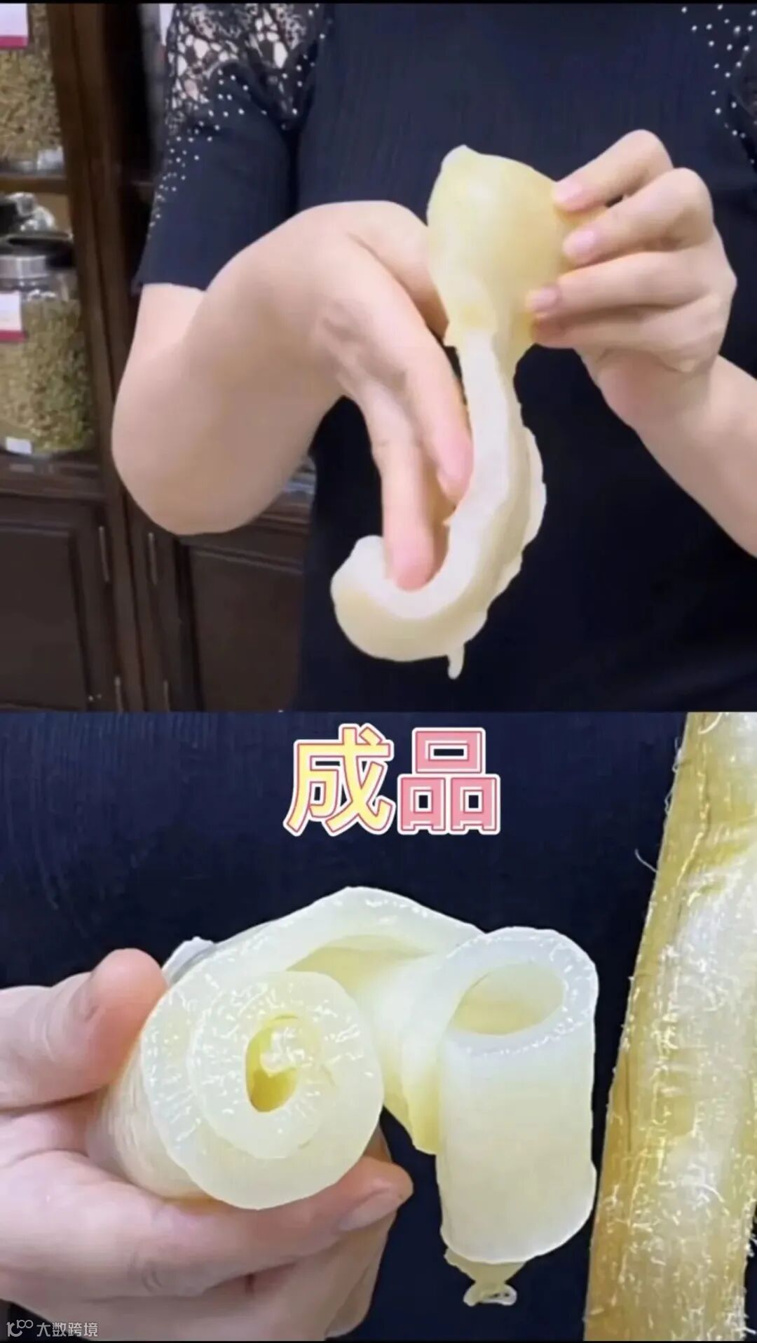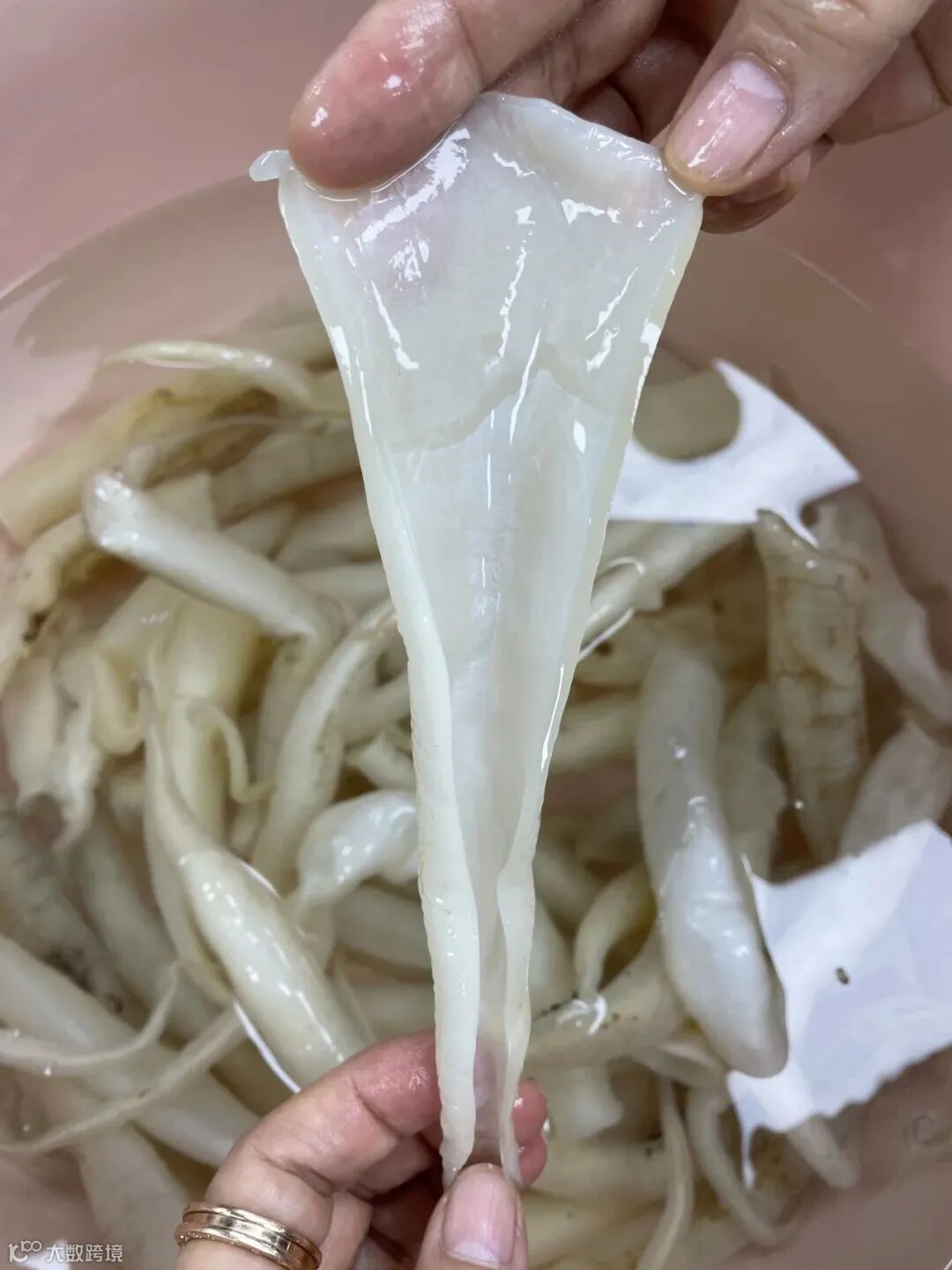 从中间剪开,冰箱泡发6个小时,蒸15分钟后在放冰箱一个晚上。