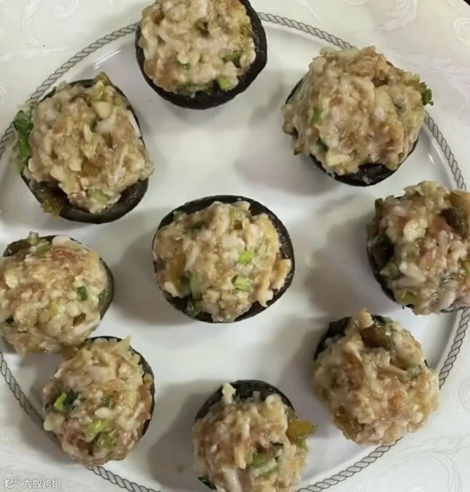 调味好肉馅放入冬菇上
